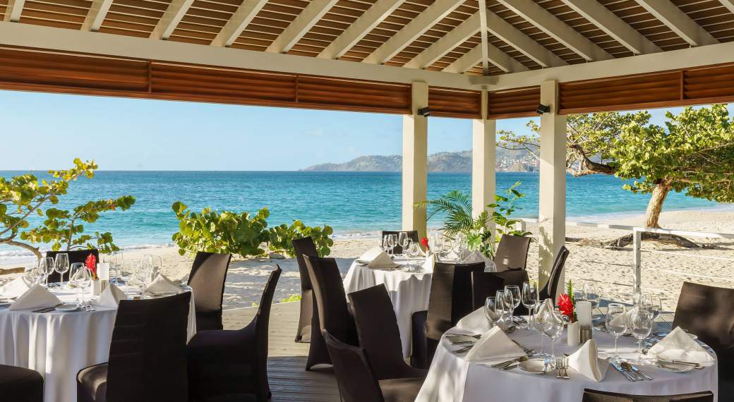 Oleander Garden View Suites include living rooms and breezy balconies or patios tucked away in lush tropical gardens. Sea Grape Beach Suites lie directly on Grand Anse Beach and contain ocean-view tubs in addition to an elegant living area and private garden with chaise lounges and a double hammock.